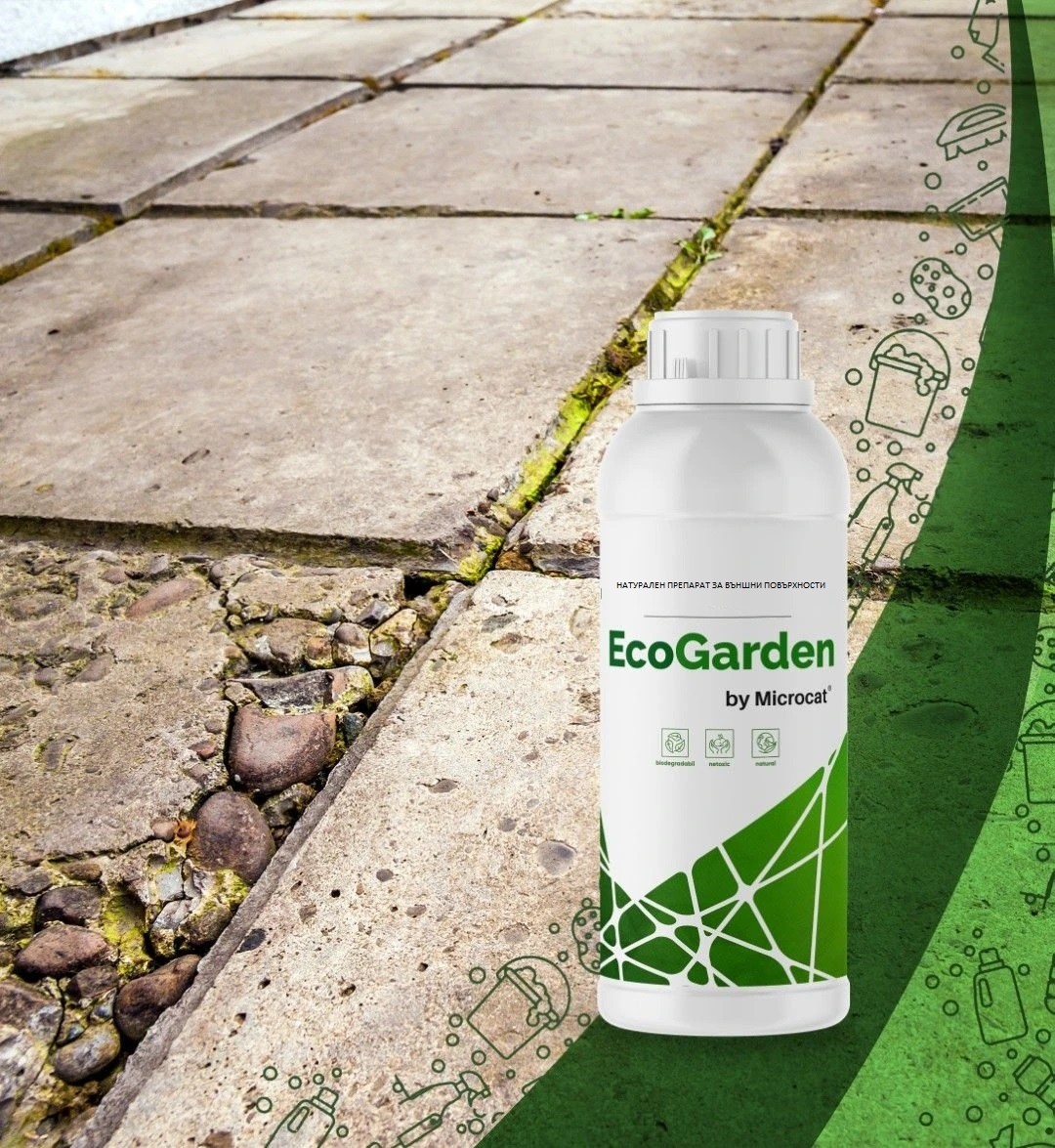 EcoGarden е 100% натурална почистваща течност, базирана на оцетна киселина и растителни ПАВ. Използва се успешно срещу атмосферни отлагания, отлагания от водорасли или други организми.